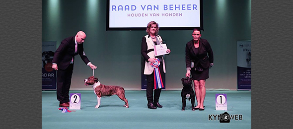 “Grace” won her second J-CAC and Reserve best female in breed, “Boy” is still the #1 Amstaf from the Netherlands!!
