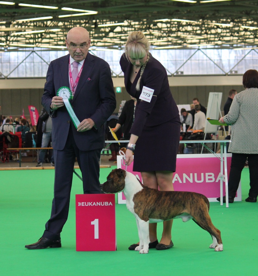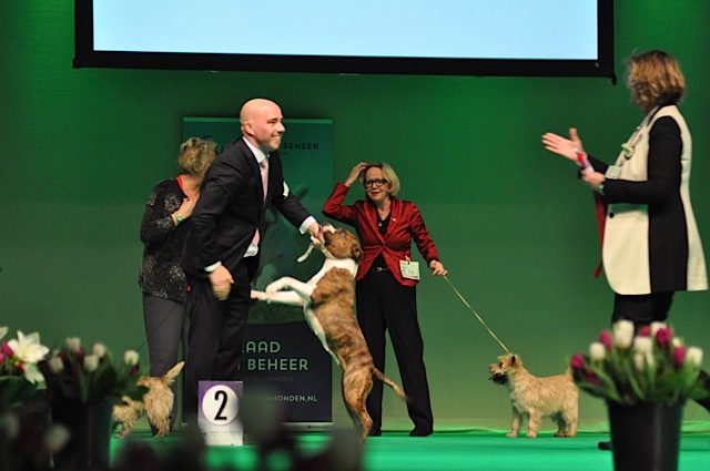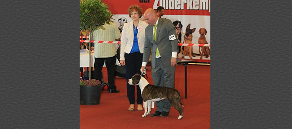 274 all breed dogs and 5 amstafs were qualified for this prestigous show, only groups are judged at this show, and only 2 dogs get a placement in the group. Terriergroup was judged by Mrs Stuivenberg from the Netherlands.