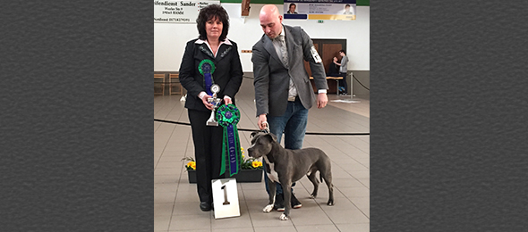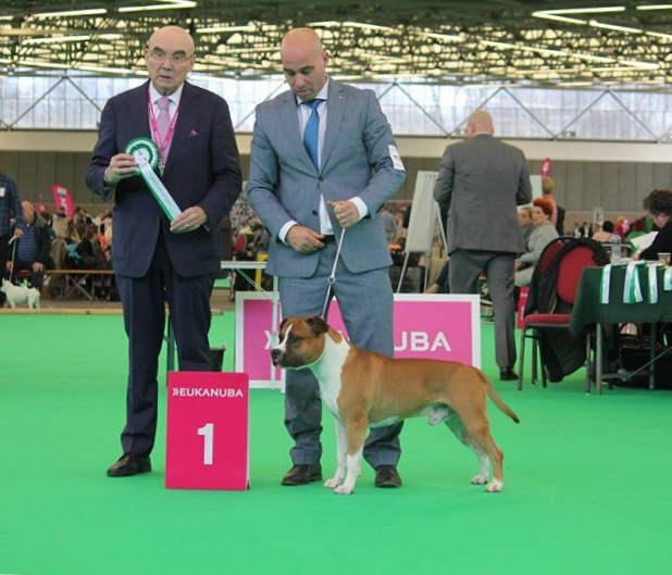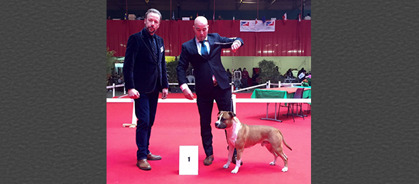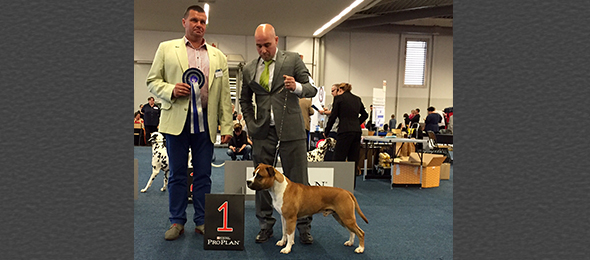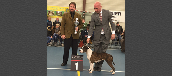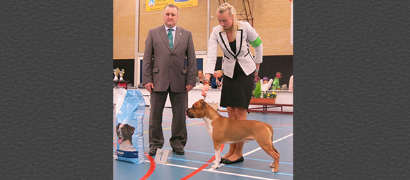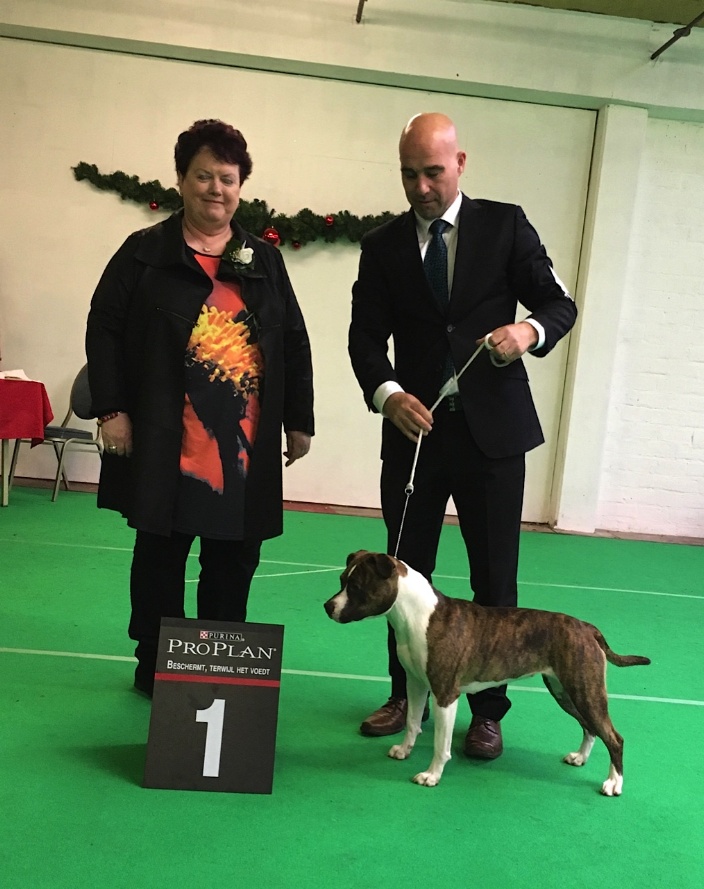 “Grace” won her second J-CAC and Reserve best female in breed, “Boy” is still the #1 Amstaf from the Netherlands!!
