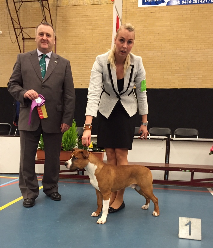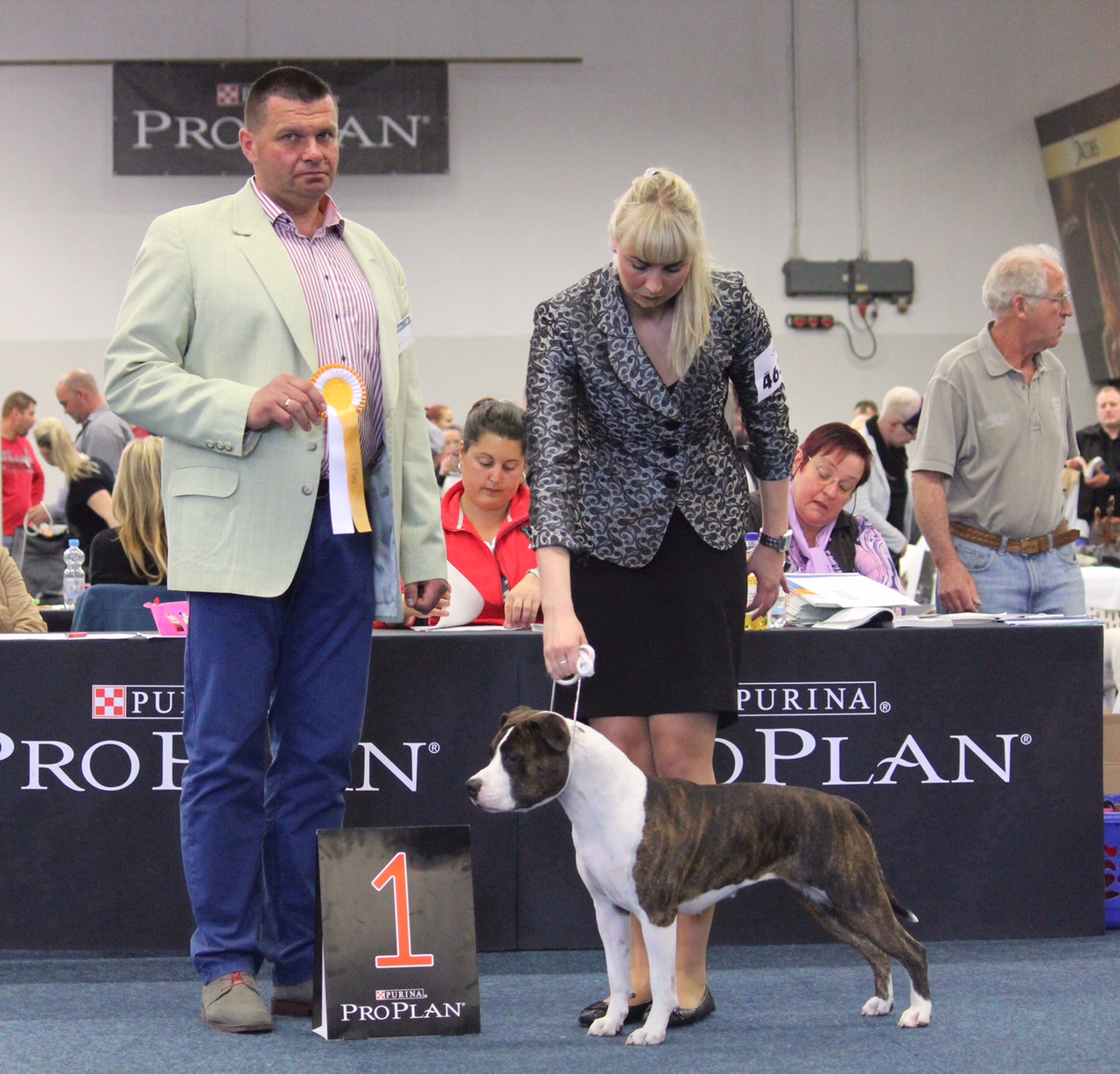 2377 all breed dogs and 34 amstafs entered under judge Mr Ehrenreich from Austria.∫ Carmichael’s For Your Eyes Only won 1e place Open class.