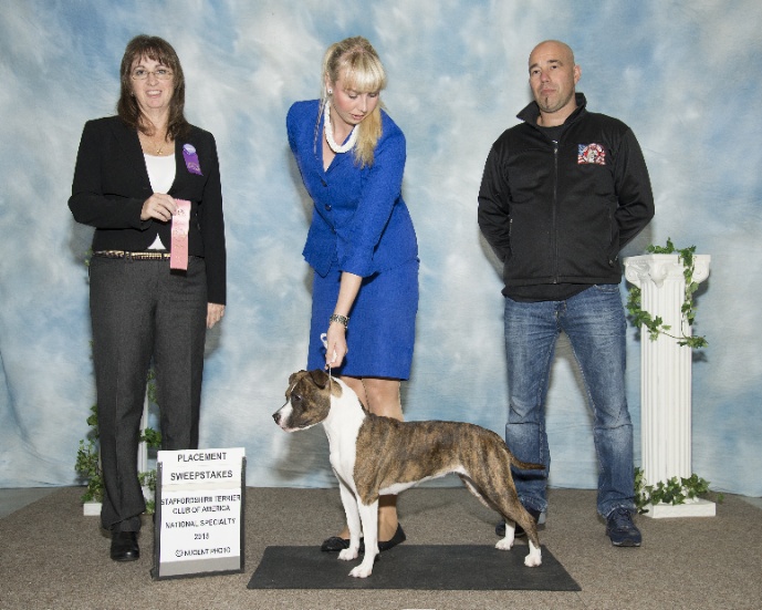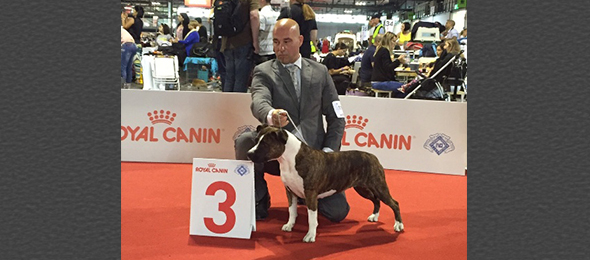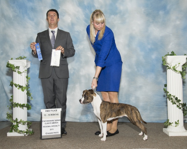 ∫ Ch. Great Am-Staff's Good as Diamond won 1st place Veteran class & Reserve CAC and Best Veteran in breed!"Spot" won later in the ring of honour Best Baby in show of 61 all breed babies under judge Mr. Vyguzoz from Russia.